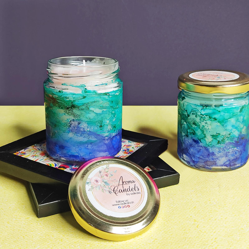 Blue and Green Aroma Candle – Fluid Art Painted Candle Jar