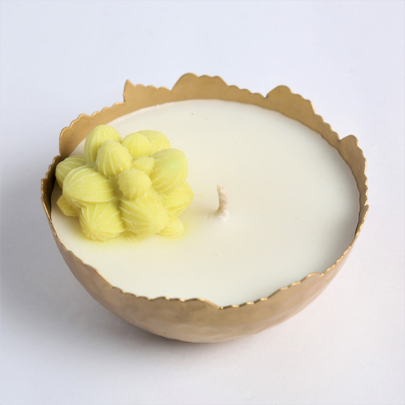 Ziya Gift Box: Vanilla Homemade Candle with gold foil and Handmade Brass Candle Stand with lid